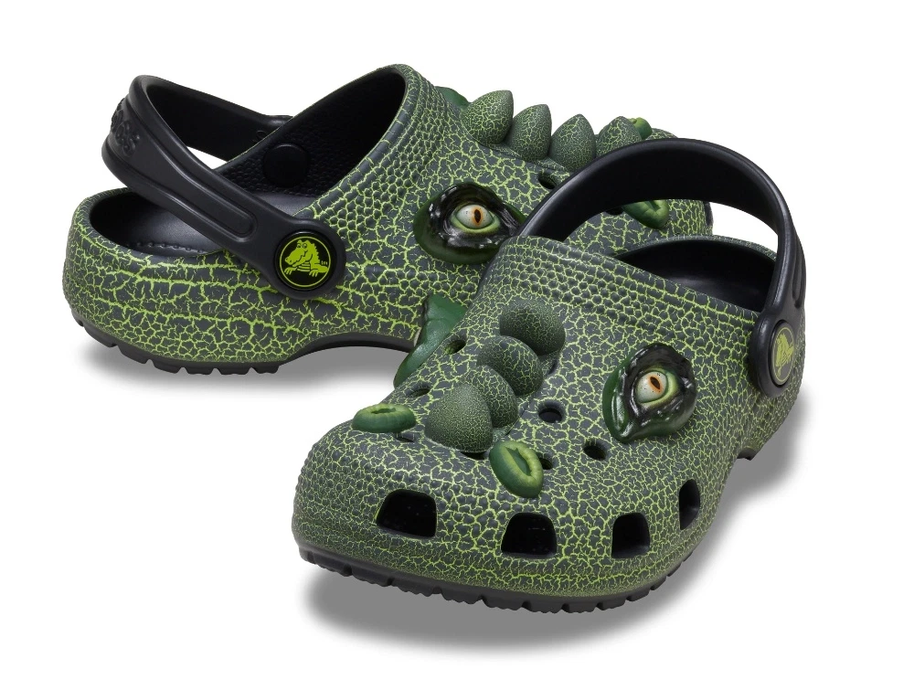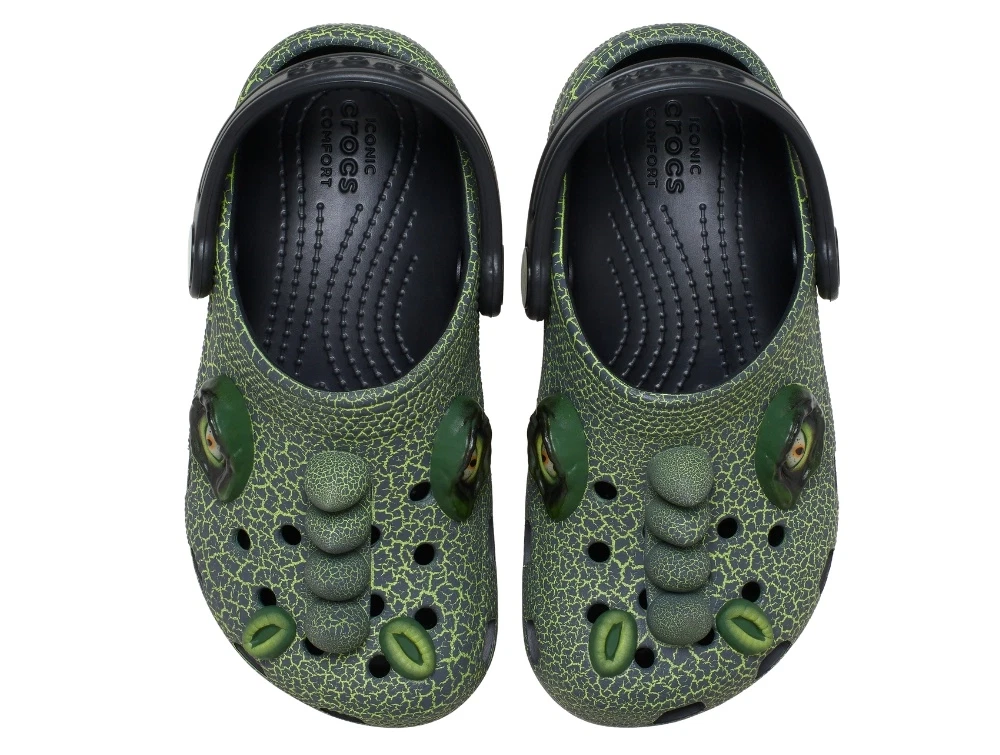 Crocs Classic dino clog i grøn med let komfort og justerbar hælrem