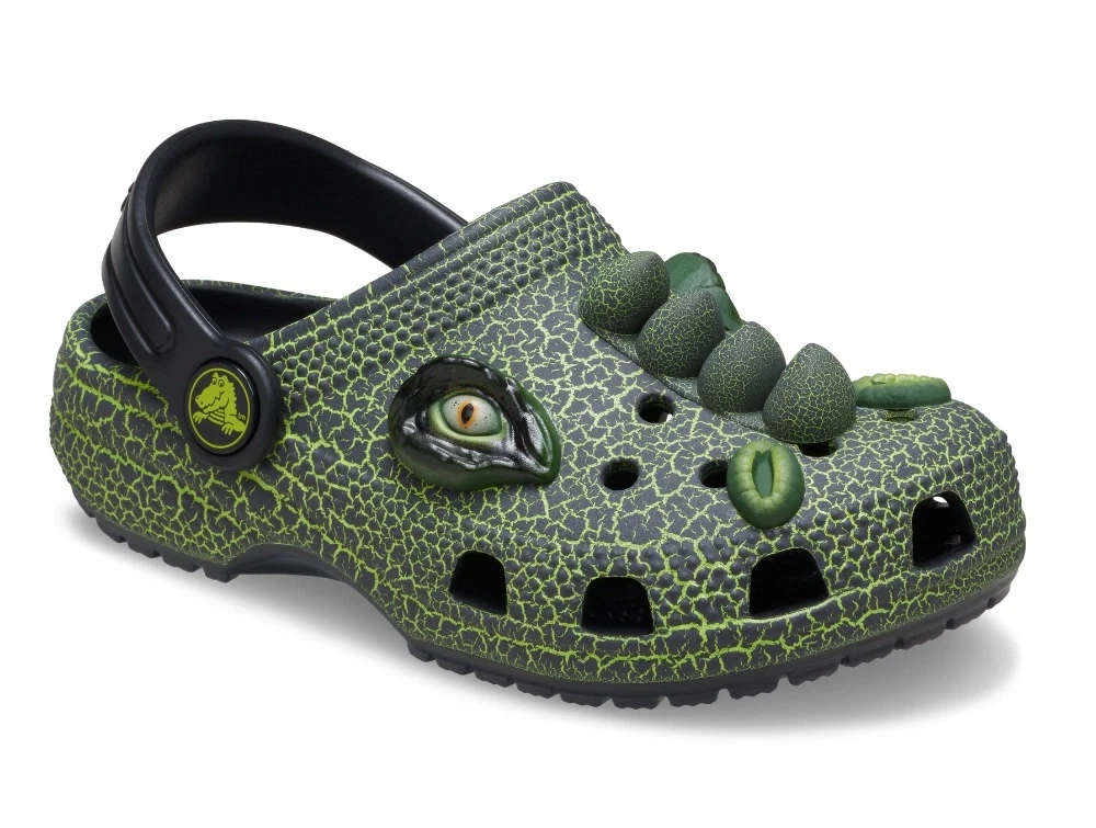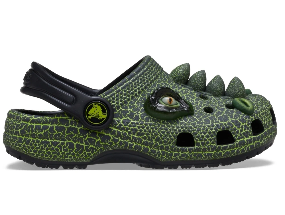 Crocs Classic Dino clog grøn med detaljer og hælrem