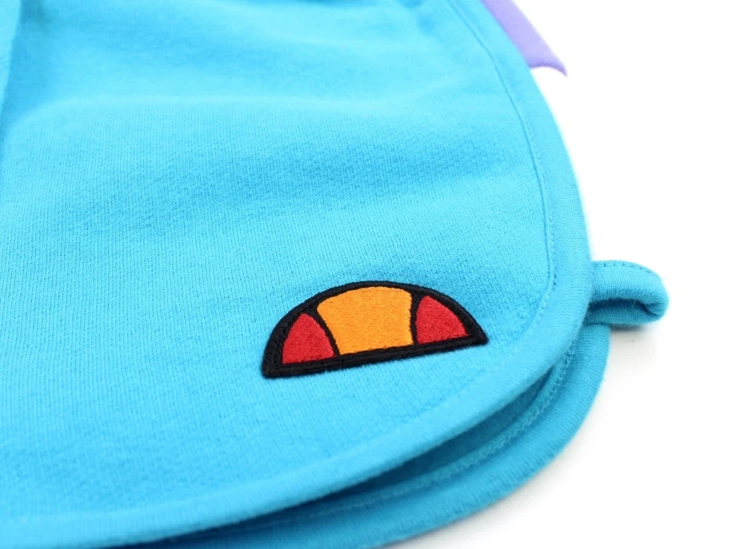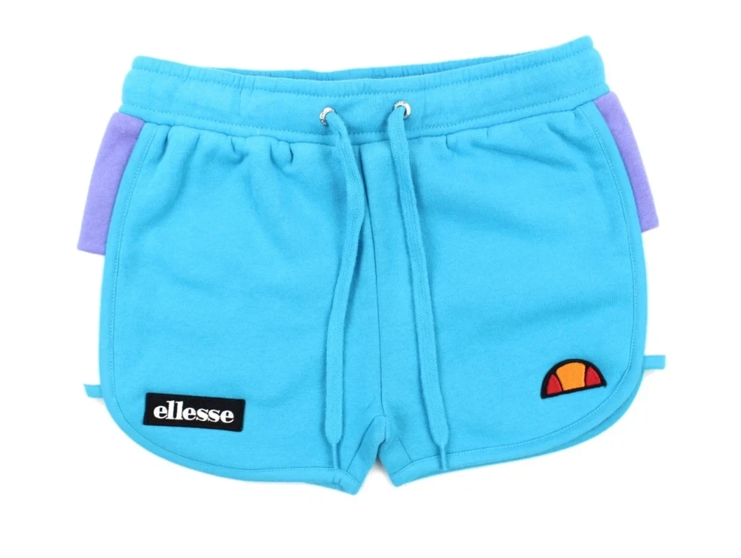 Turkisblå shorts med hvide og lilla detaljer fra Ellesse. Blød fleece indvendigt.