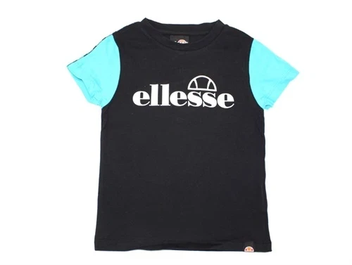 Sort t-shirt fra Ellesse med blågrønne ærmer og logo.