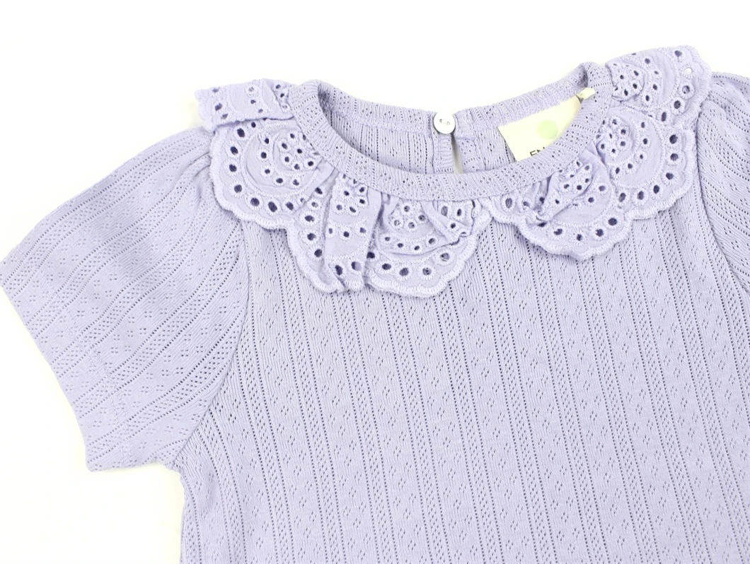 Den fine pointelle t-shirt fra En Fant er en charmerende tilføjelse til ethvert piges garderobe. Lavet af 100% bomuld, tilbyder denne t-shirt en ekstra blød og behagelig fornemmelse mod huden. De lette pufærmer med stofrynker på skulderen tilføjer et sødt og piget udseende til t-shirten.