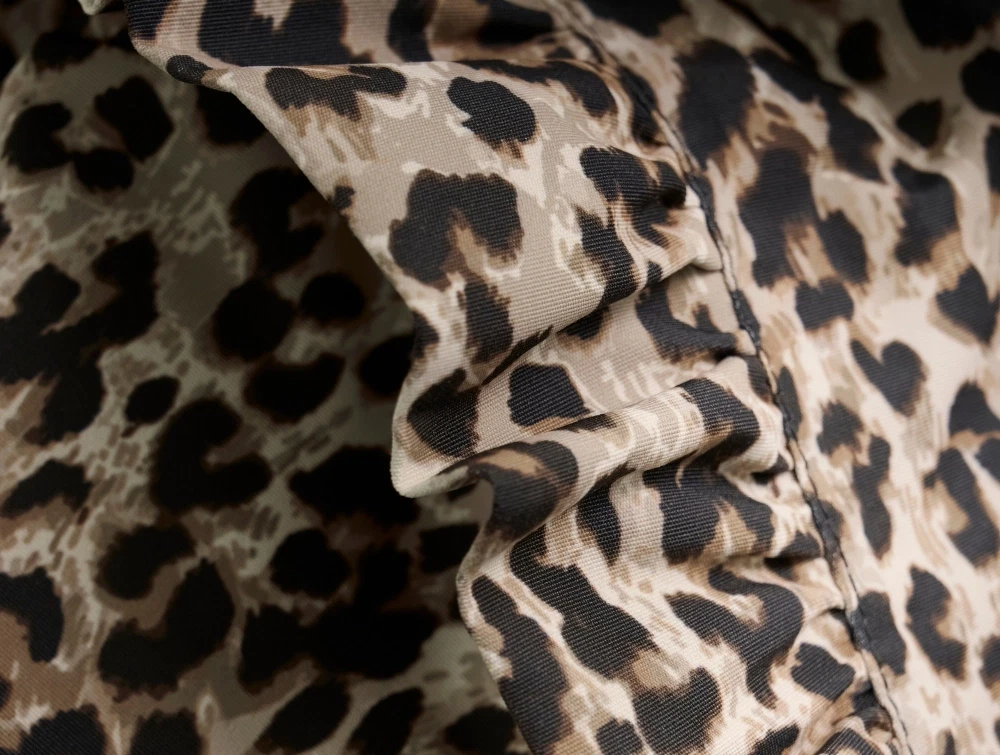 En Fant flyverdragt pine bark med leopardprint og flæser