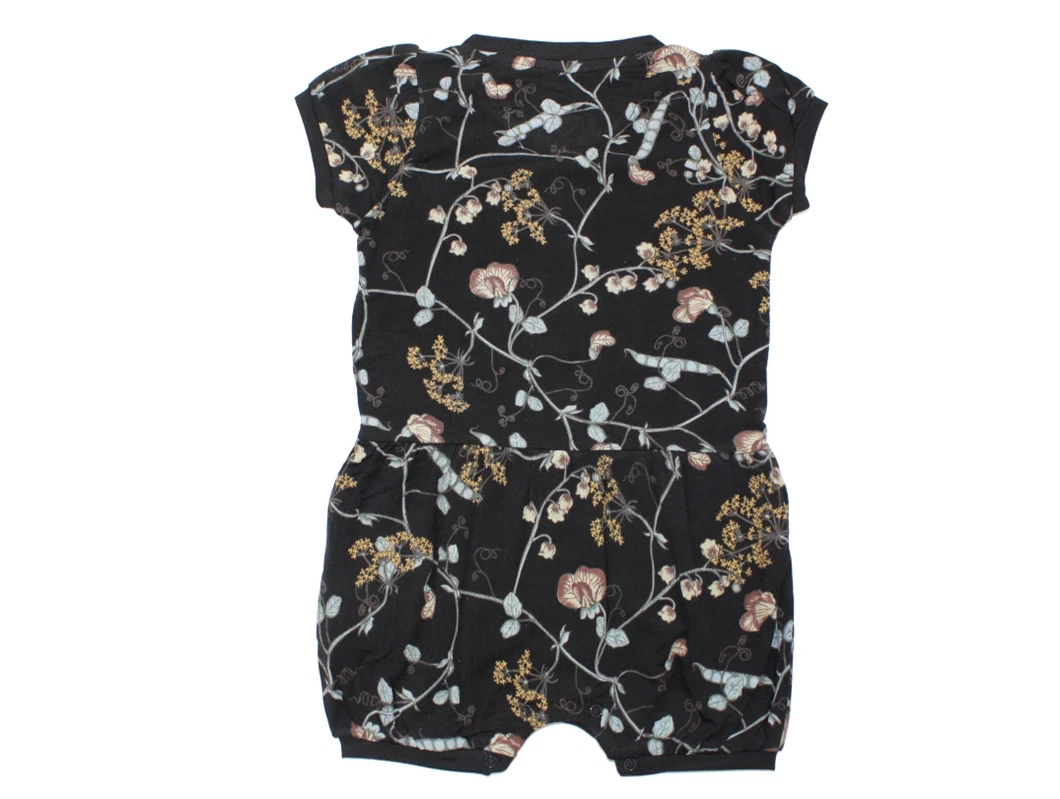 Jumpsuit med korte ærmer og ben fra En Fant. Buksedragten har fint blomsterprint og åbnes og lukkes med trykknapper.