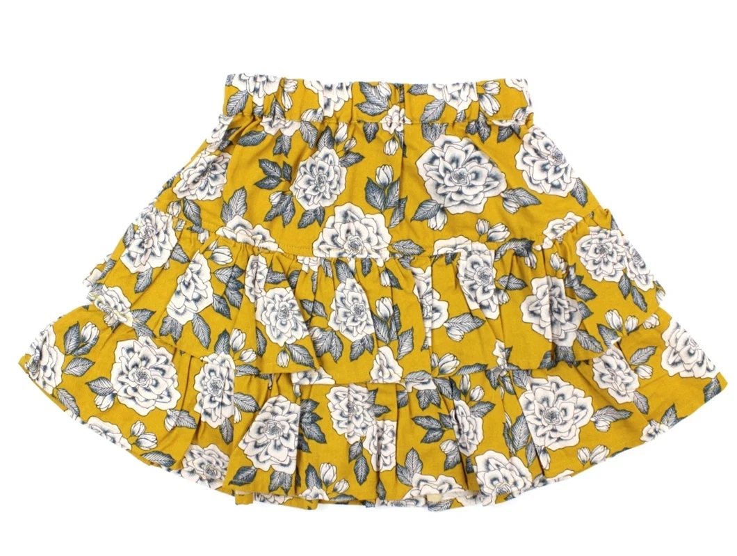 Nederdel o farven harvest gold med blomsterprint og justerbar elastik i linningen fra En Fant.