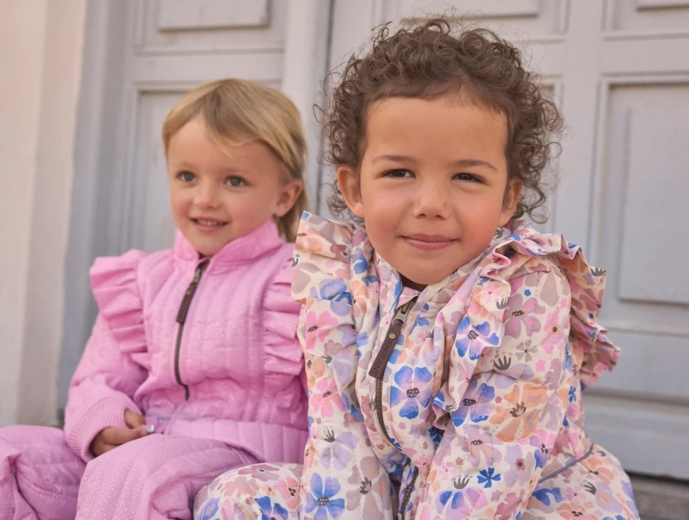 En Fant termosæt cloud gray med blomsterprint og flæser