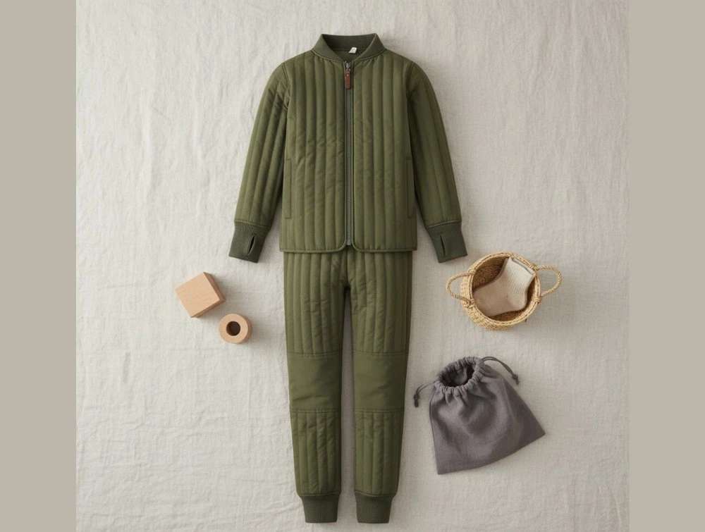 En Fant termosæt i grøn nuance med quilt og ribkanter