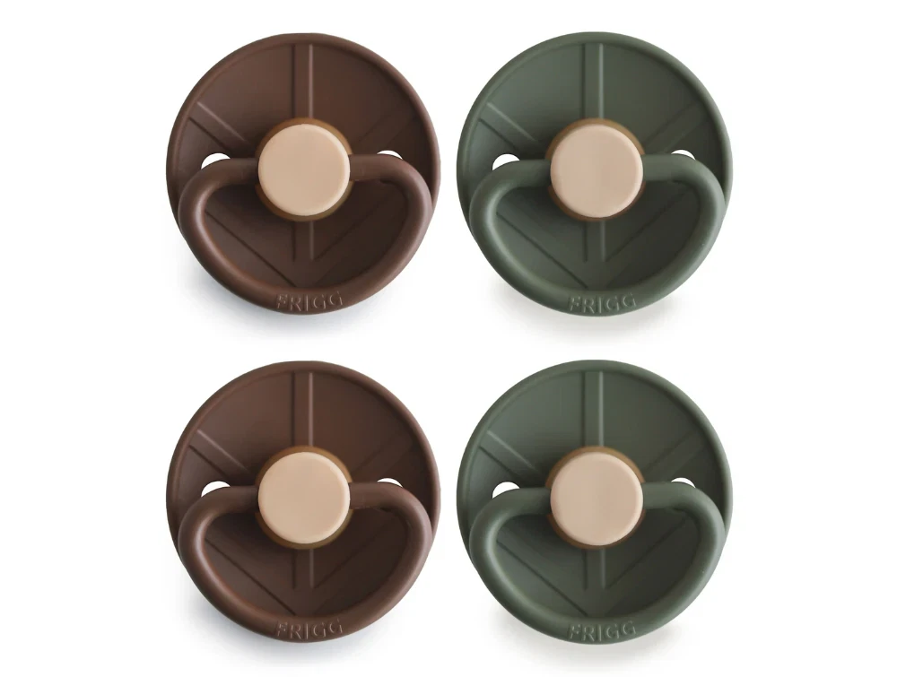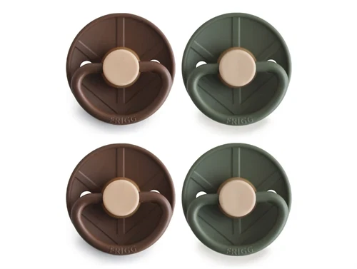 4 fine sutter i farverne olive og cocoa fra det danske mærke FRIGG.