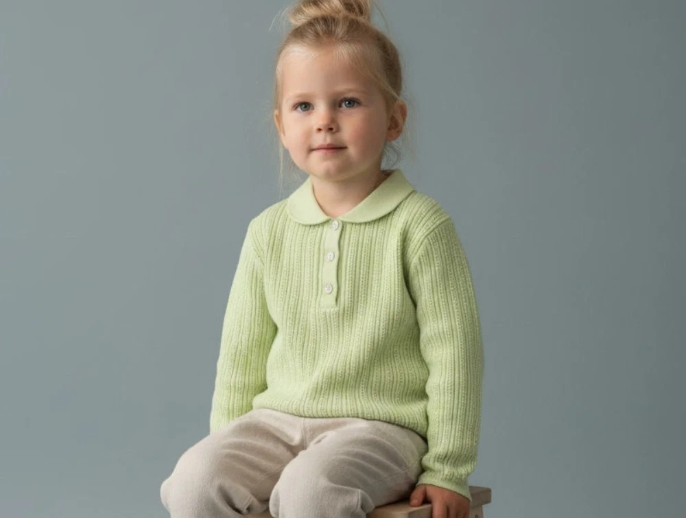 Fineste bluse i pointelle i farven apple med lille krave fra FUB.