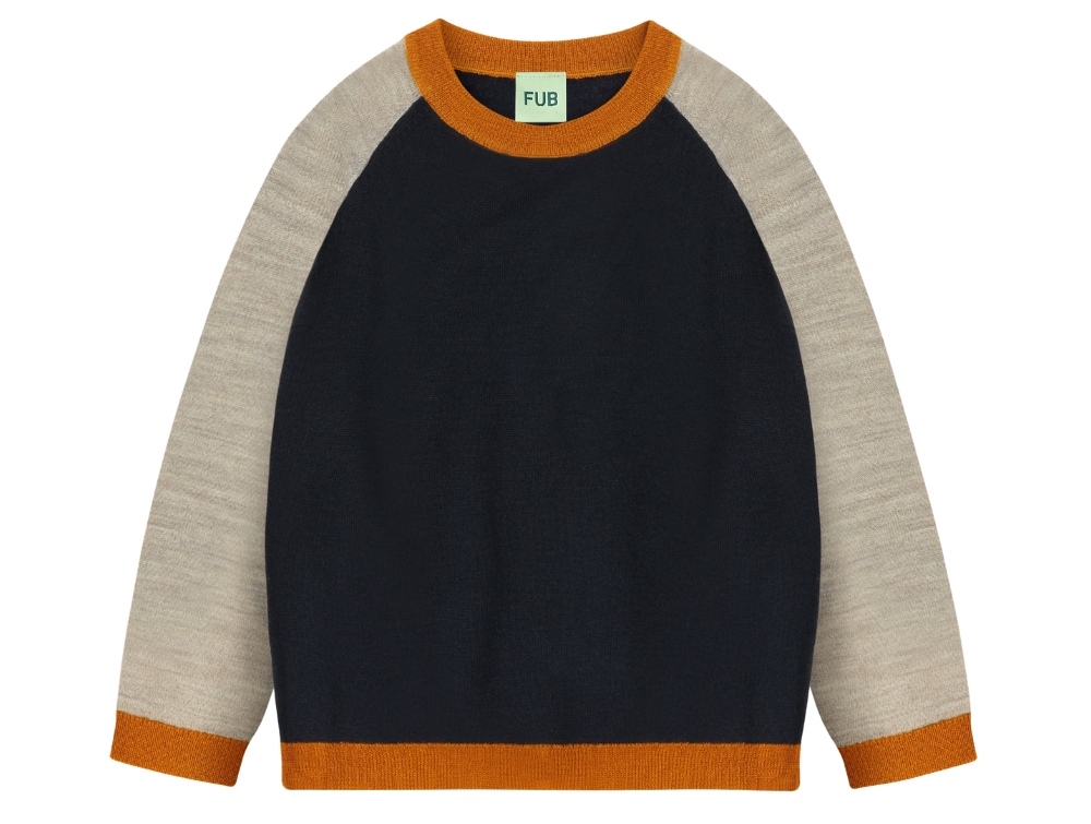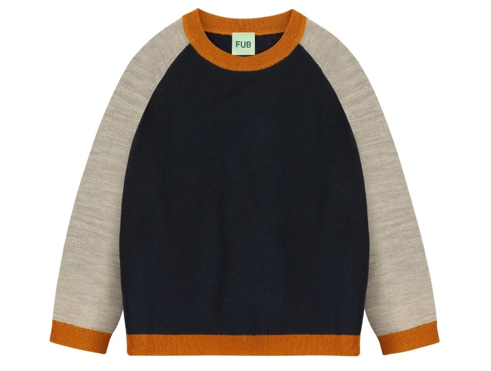 FUB colour block bluse i mørkeblå merinould med kontrastærmer