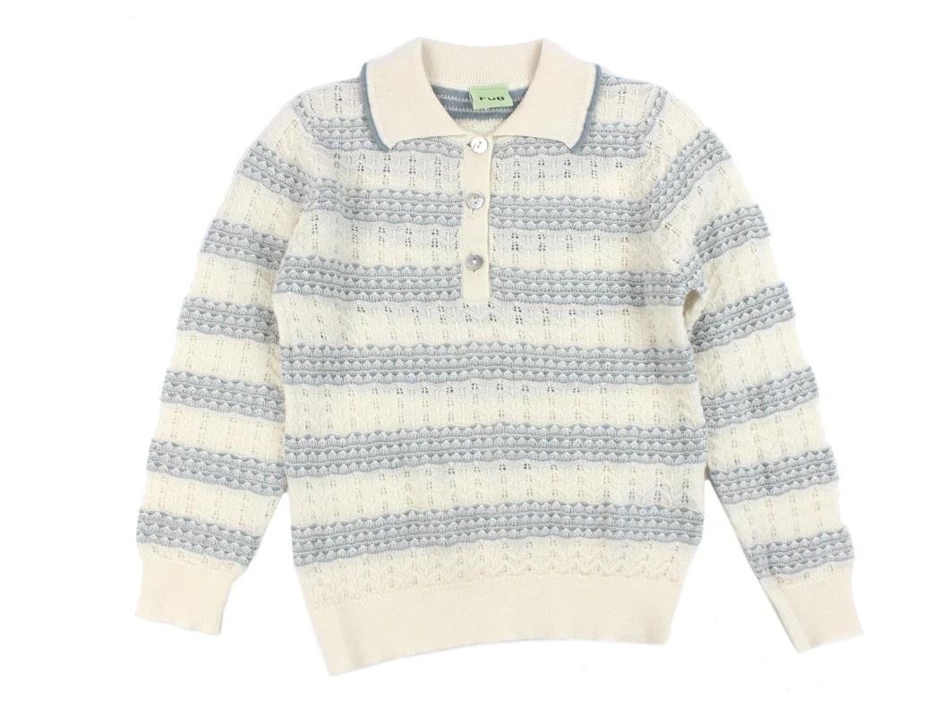 FUB ecru/misty green pointelle polo merinouldFUB ecru/misty green pointelle polo merinould