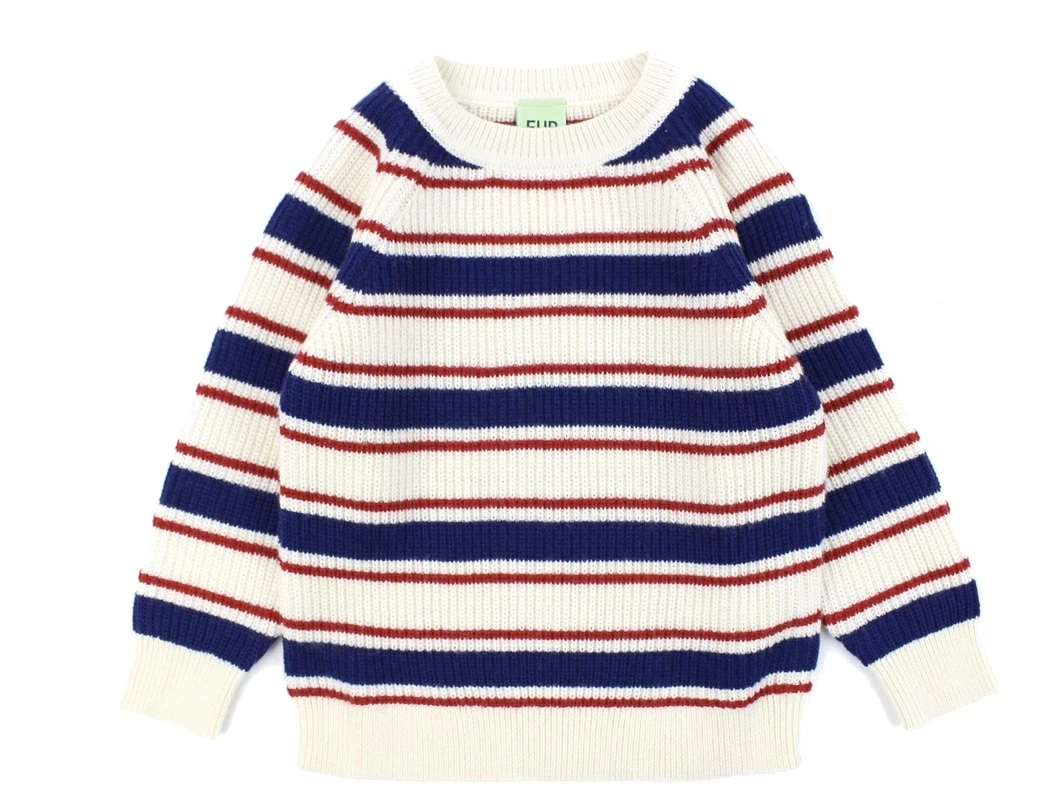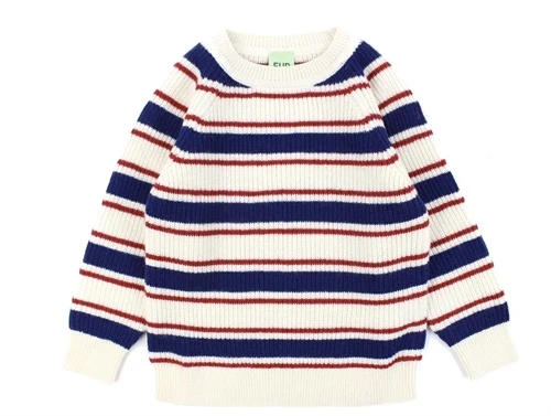 Stribet raglan sweater i farverne ecru, royal blue og bright red fra FUB.