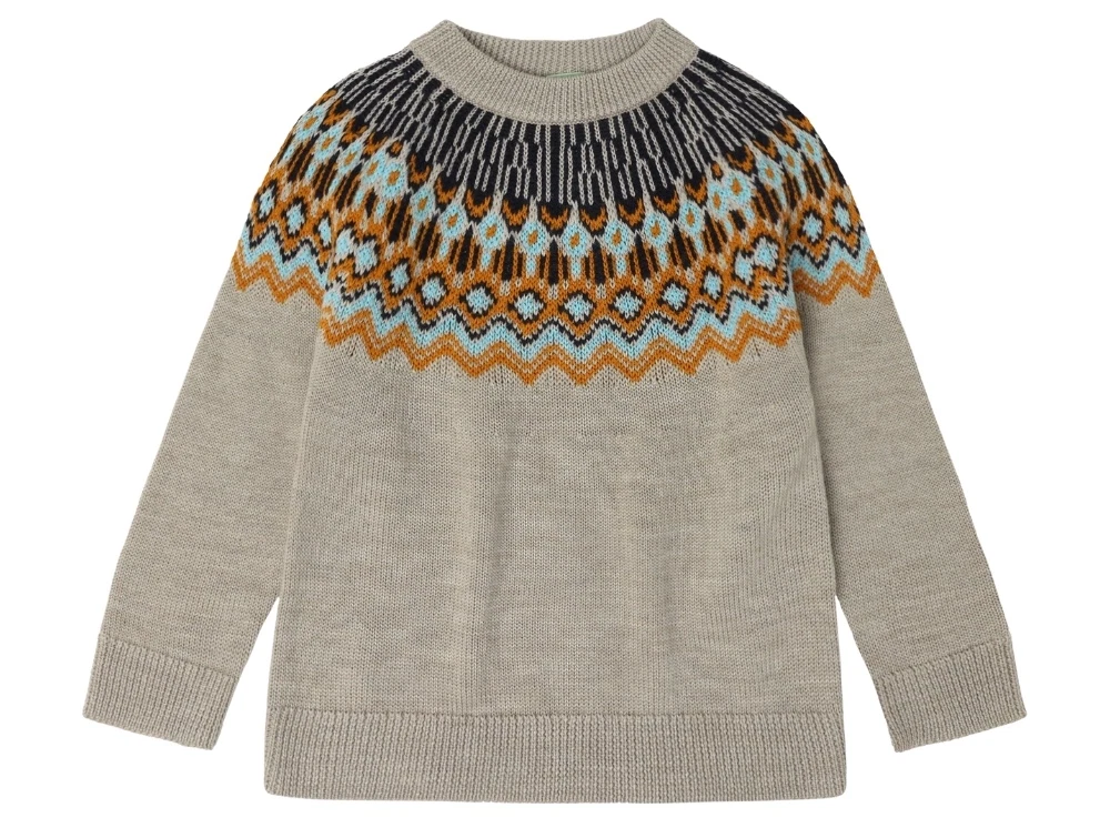Fair Isle sweater i oat melange med mønstret bærestykke fra FUB i merinould