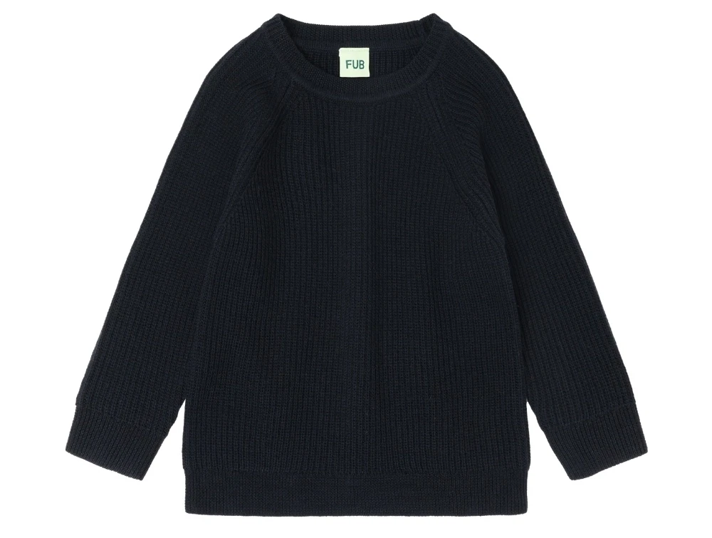 FUB raglan sweater i mørkeblå merinould med afslappet pasform