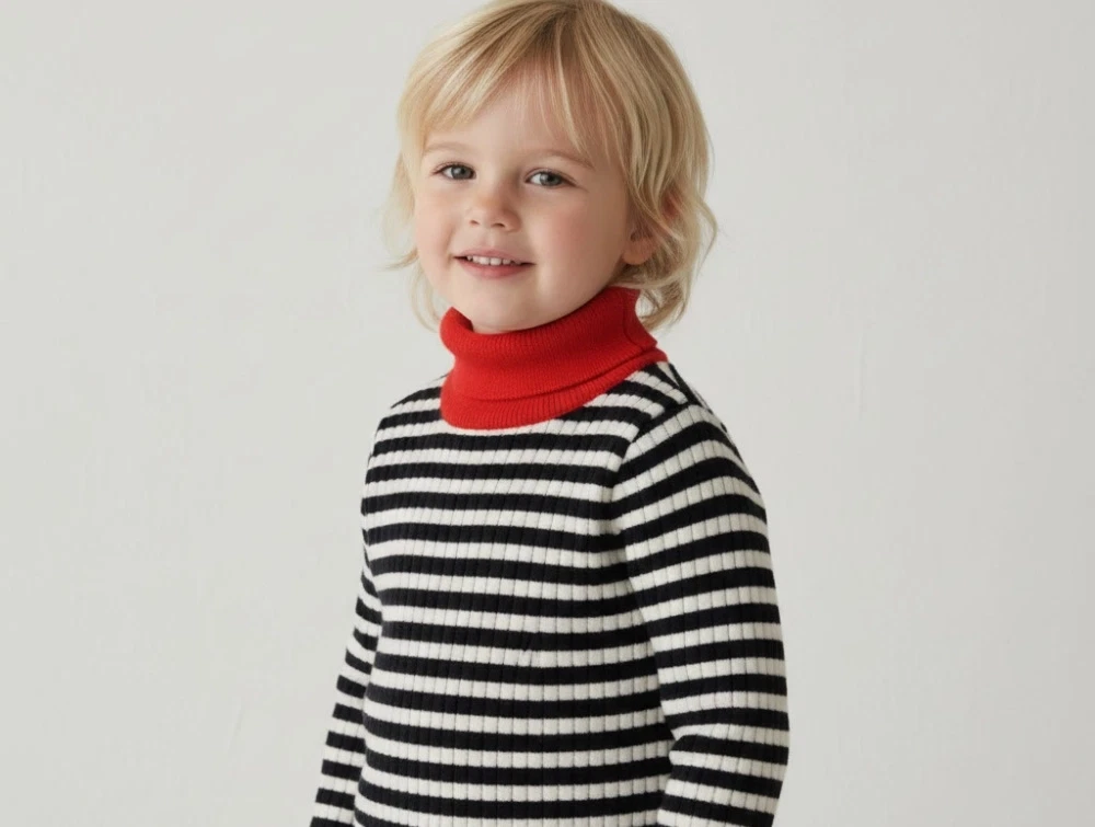 • Langærmet model med rullekrave
