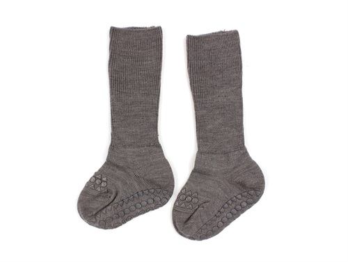 Strømper i farven brown melange fra GoBabyGo med skridsikre såler og gummidutter på tæerne.