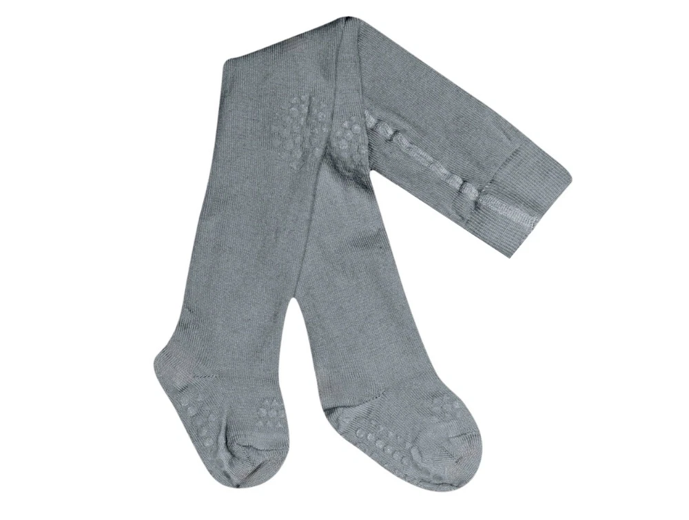 GoBabyGo kravlestrømpebukser i stone blue merinould med gummidutter