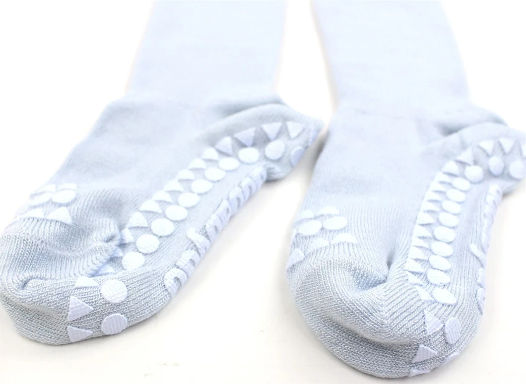 To par strømper i farven sky blue fra GoBabyGo med skridsikre såler og gummidutter på tæerne.