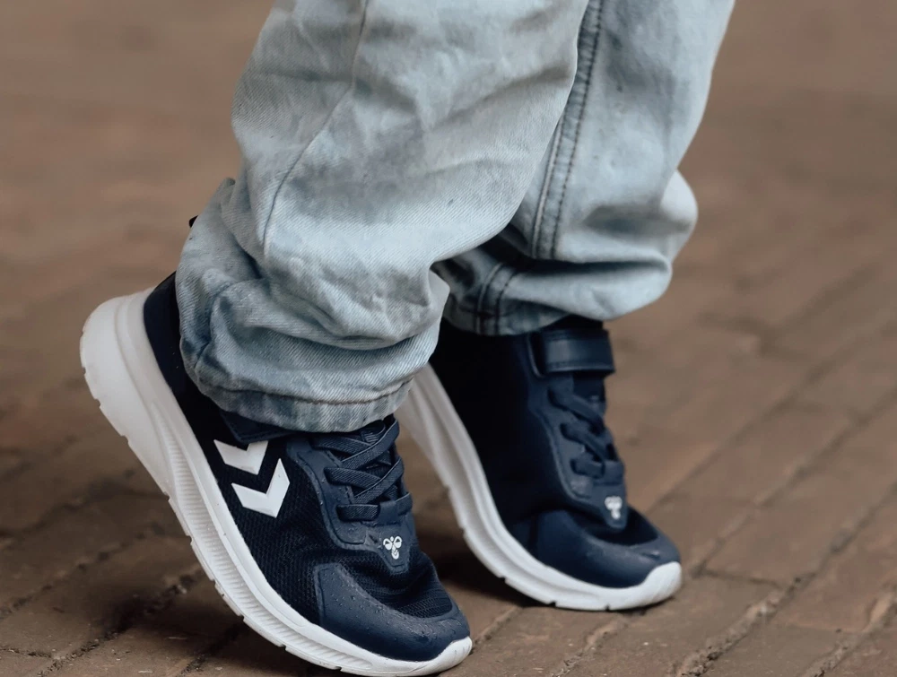 Sneaker i navy nuance fra Hummel. Modellen Actus TR Breather JR er designet til børn og har en let konstruktion med åndbart mesh, som giver god komfort omkring foden under leg og aktivitet.