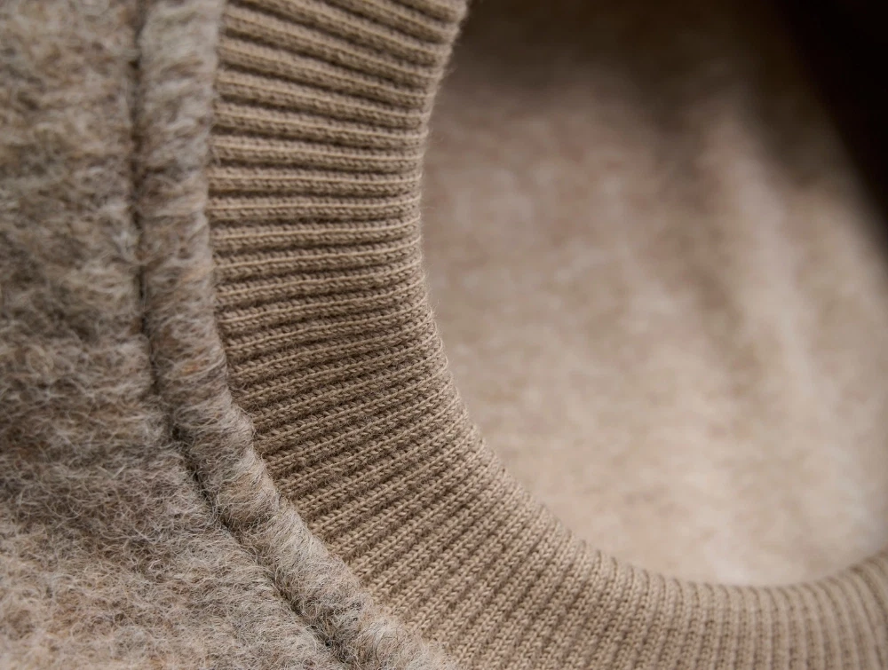 Huen er fremstillet i en lun uldblanding med blødt bomuldsfoer indvendigt, der giver en behagelig fornemmelse mod barnets hud. Den lette uld holder barnet varmt uden at virke tung og er ideel til efterår og vinter.
