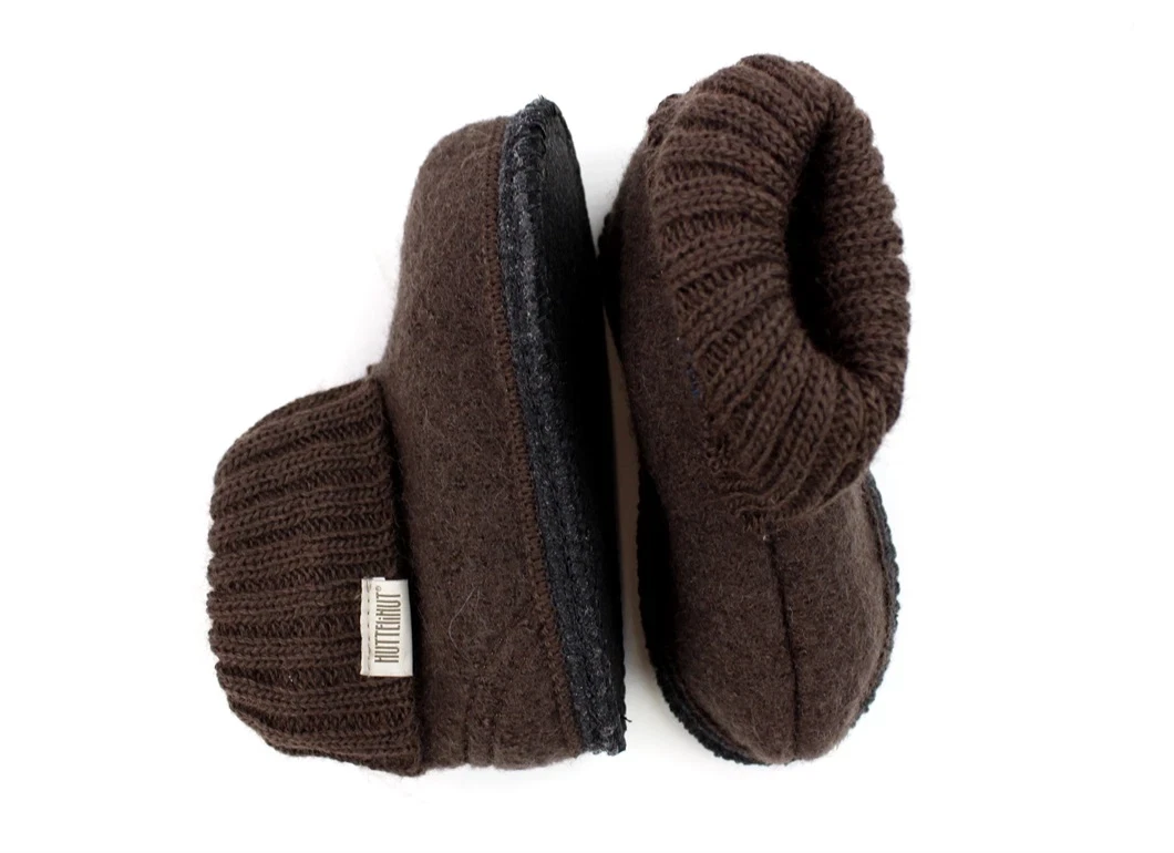 Uldfilthjemmesko fra Huttelihut i farven coffee bean.