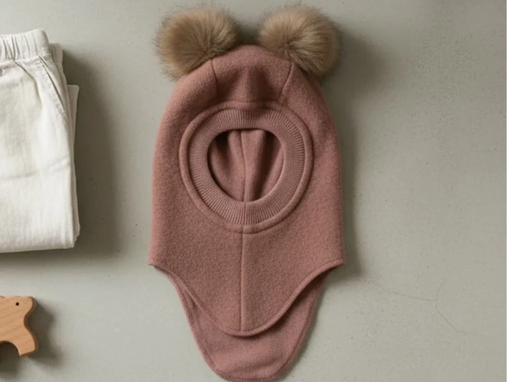 Elefanthue i farven heather med to pom pom'er (alpaca) fra Huttelihut.