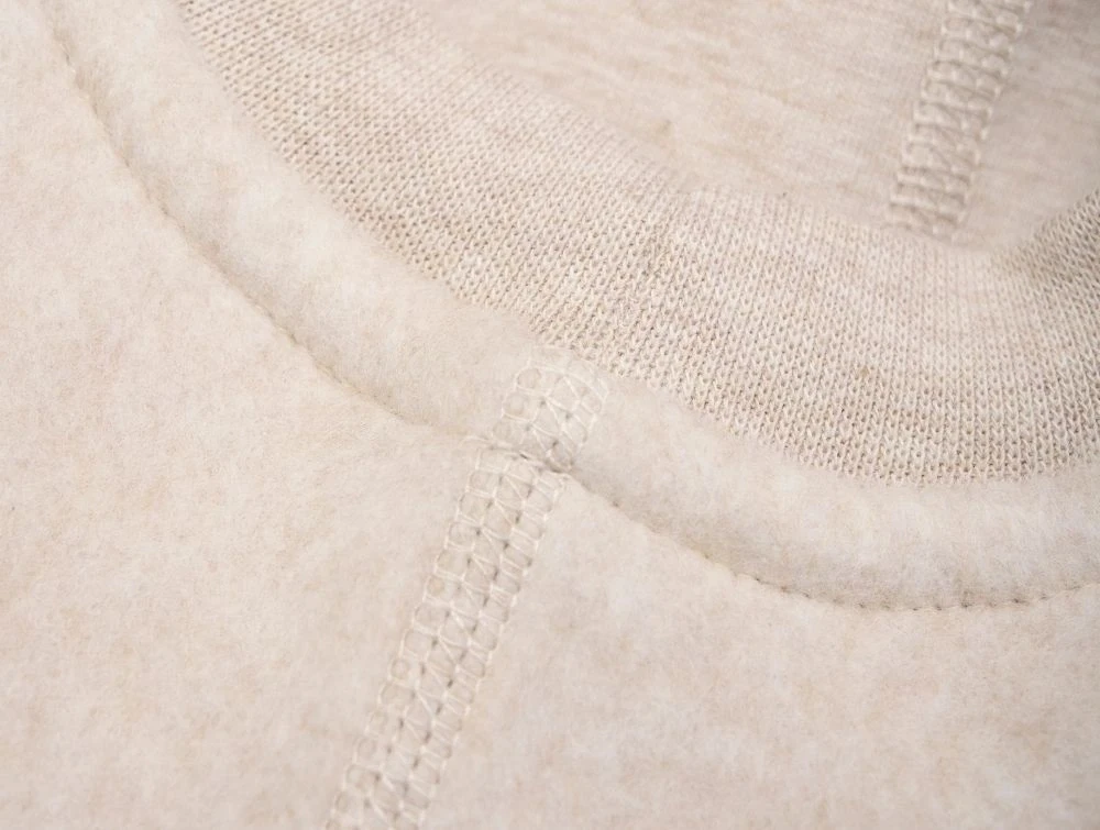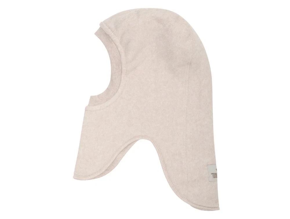 Elefanthue i beige nuance fra Huttelihut i blød bomuldsfleece med strækbar rib på indersiden.