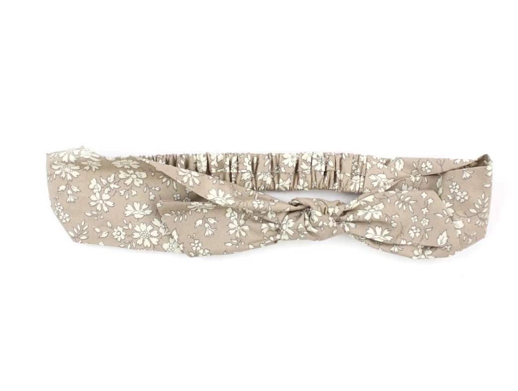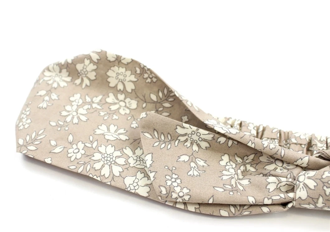 Hårbånd i farven capel camel med liberty-blomsterprint fra Huttelihut.