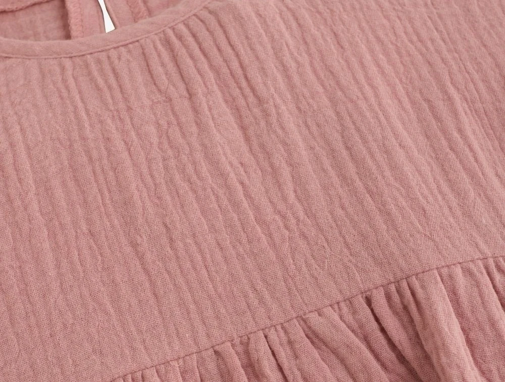 Huttelihut muslinkjole i rosa med flæseærmer