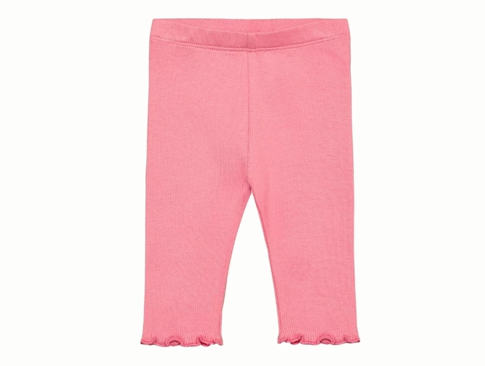 Leggings i rosa nuance (plumeria) fra Huttelihut i blød ribkvalitet med fine bølgekanter nederst på benene.