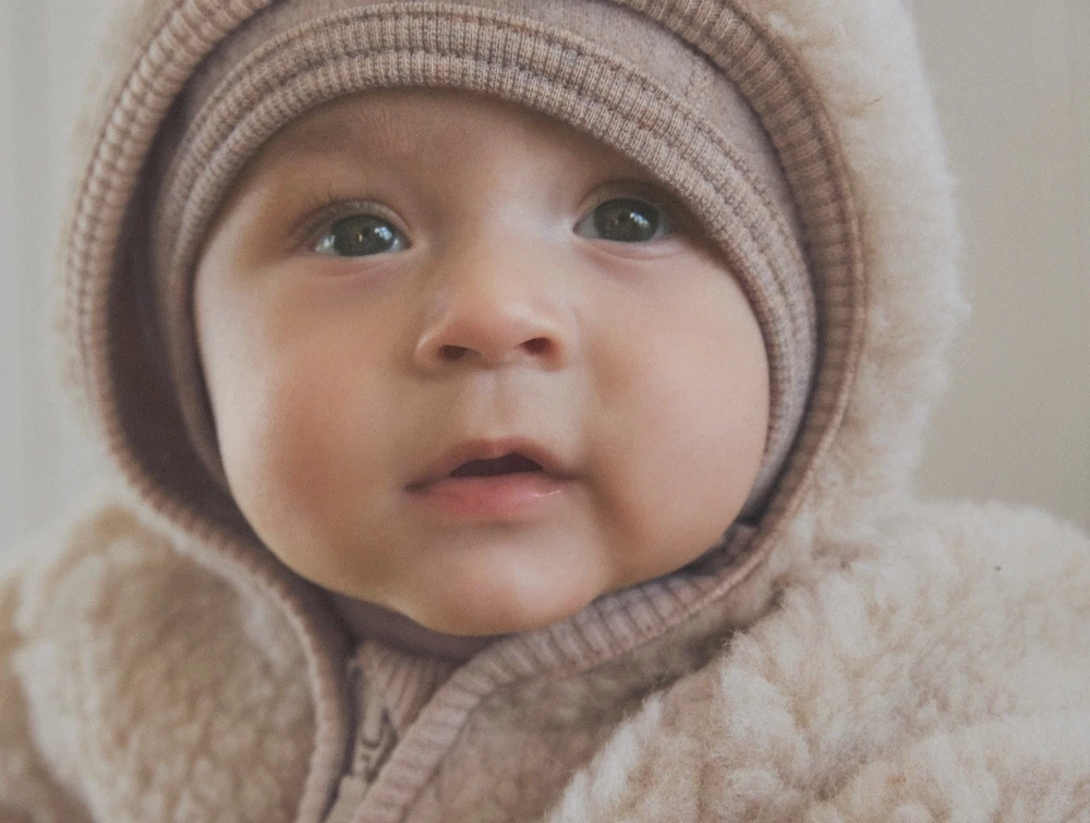 Mere information om Huttelihut køredragt cement med blødt teddy look og hætte