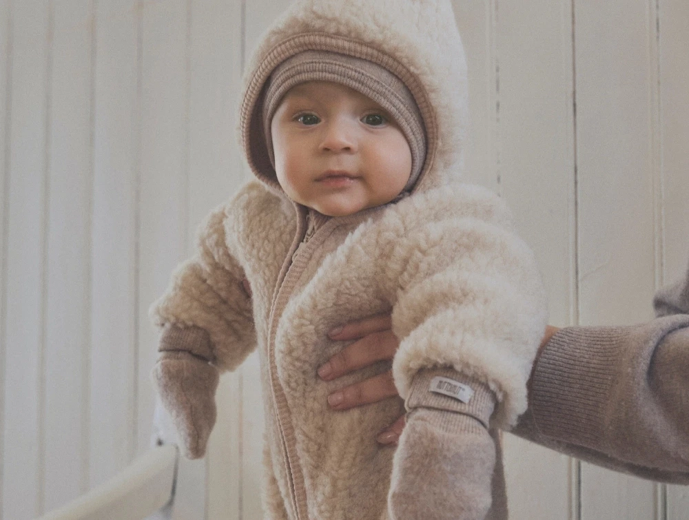 Denne heldragt er fremstillet i blød merinould med bomuldsforing, som sikrer en behagelig og lun oplevelse for de mindste.
