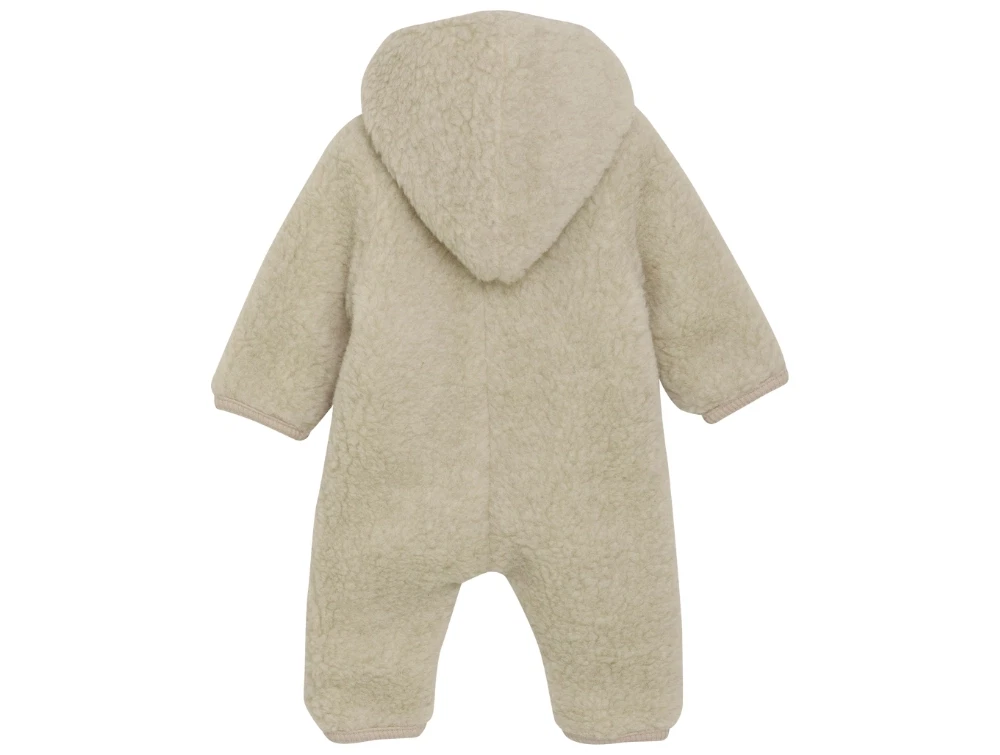 Huttelihut køredragt cement med blødt teddy look og hætte