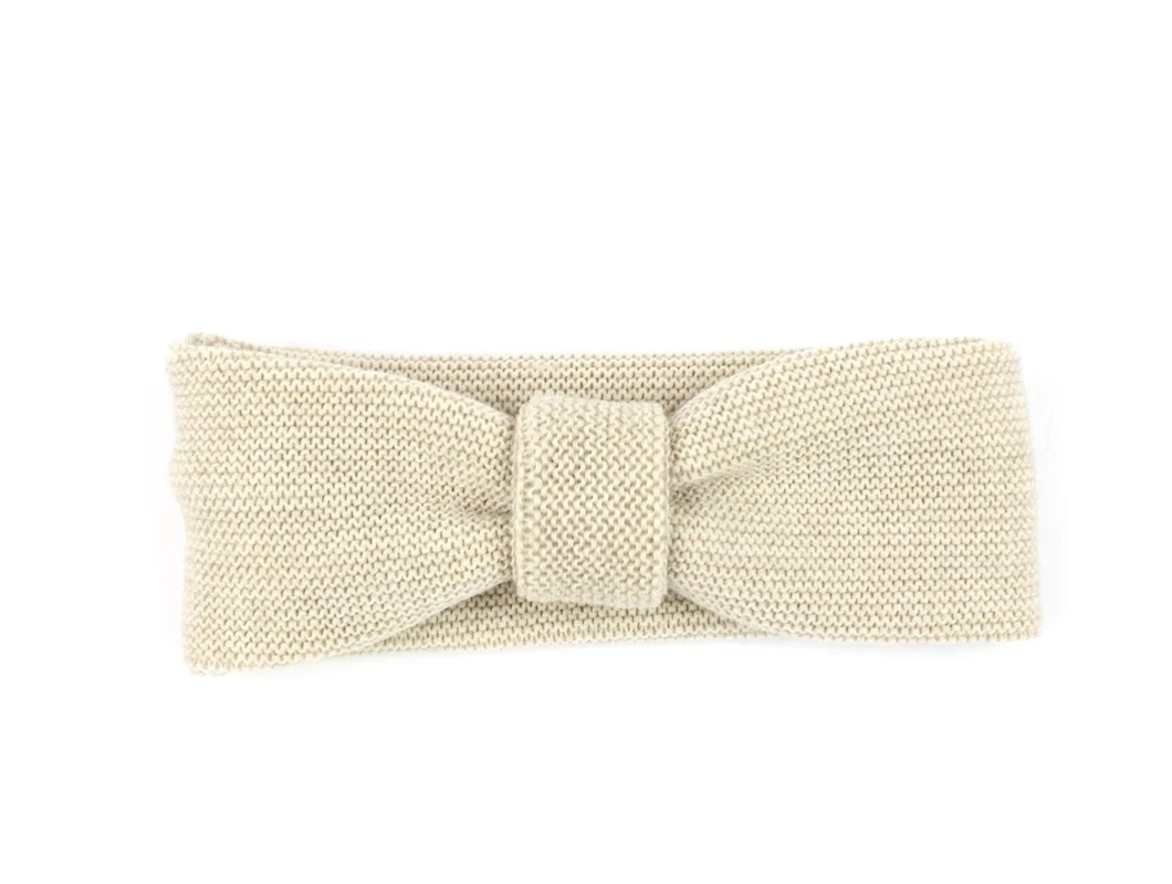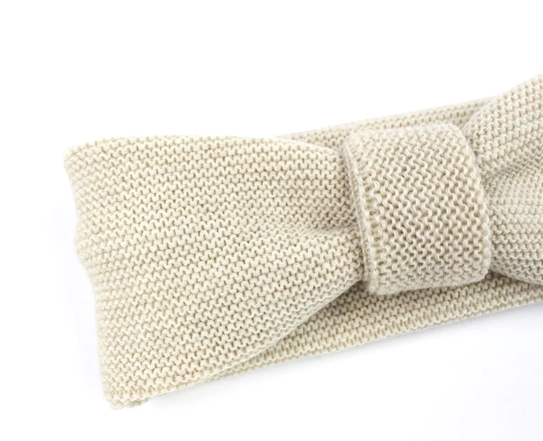 Pandebånd i farven sand i uldstrik fra Huttelihut.