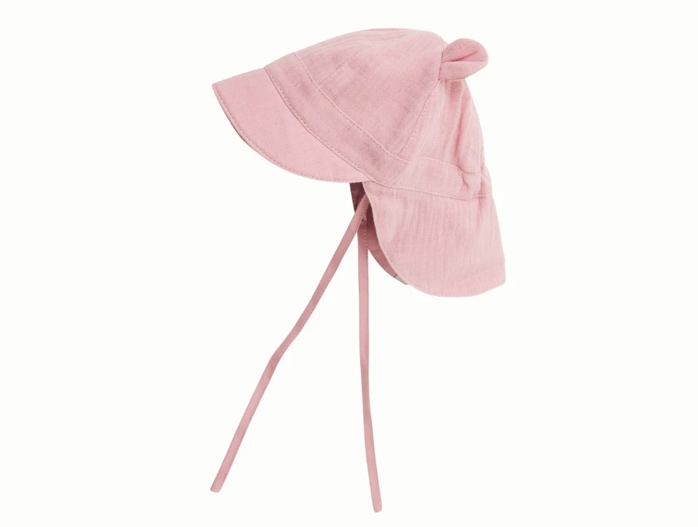 Huttelihut sommerhat i lyserød muslin med bjørneører