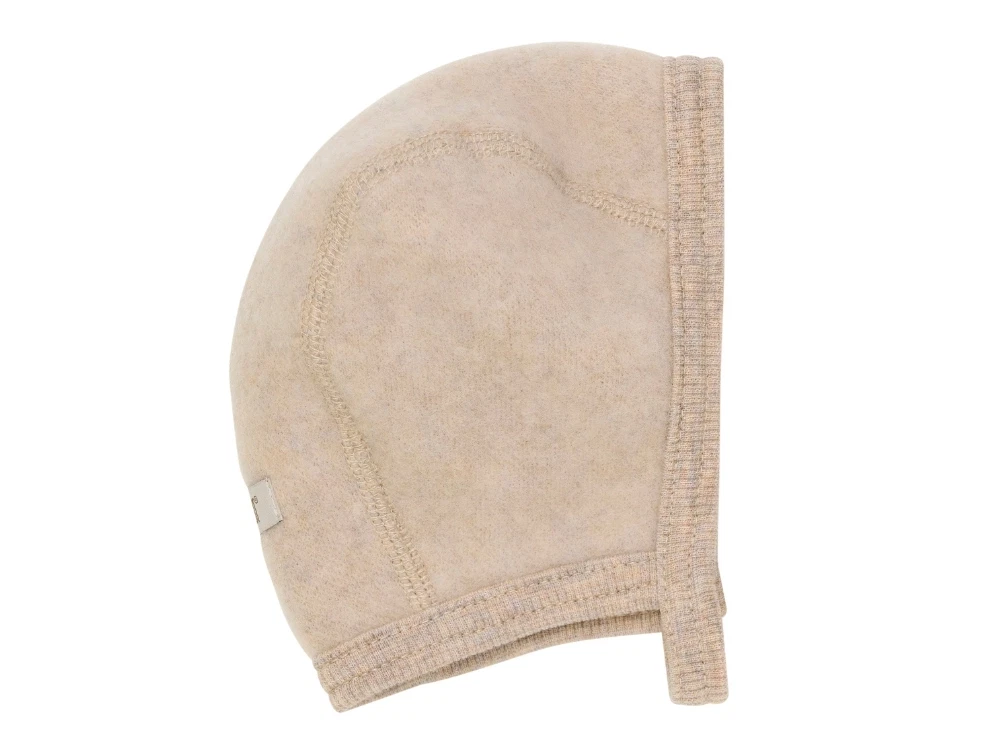 Hjelm i beige nuance (camel melange) fra Huttelihut i blød uldfleece, der giver en varm og behagelig følelse. Hjelmen er lavet af 100% merinould og er perfekt til de mindste på kølige dage.