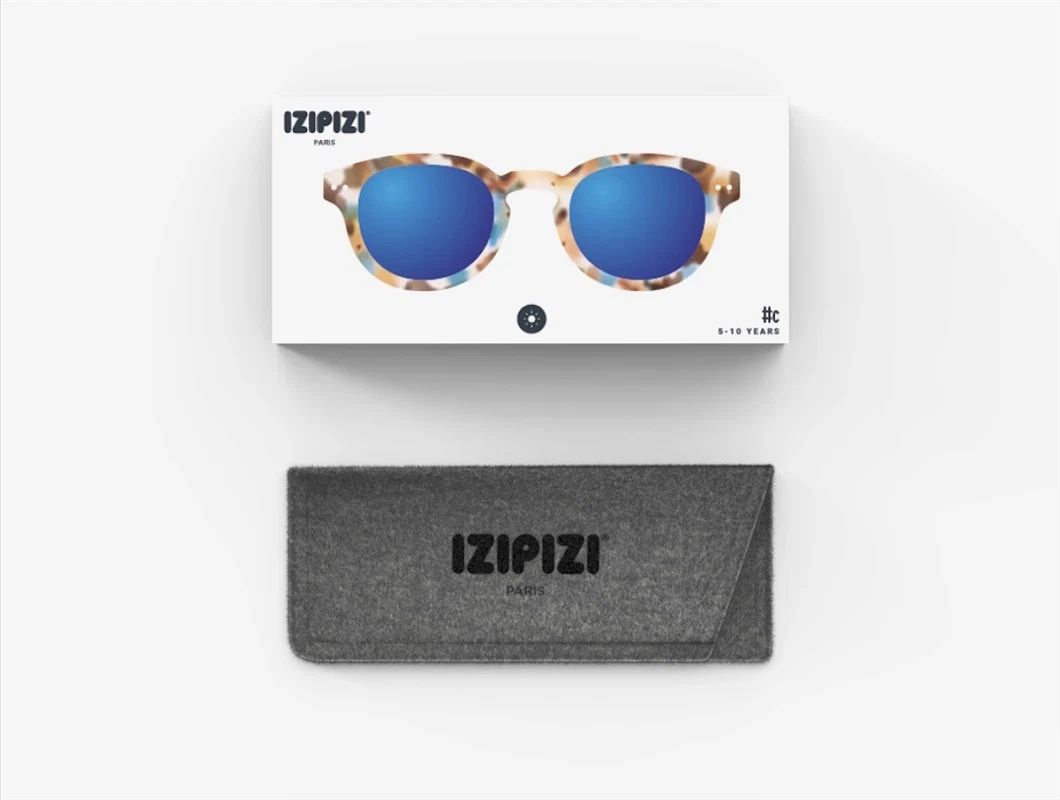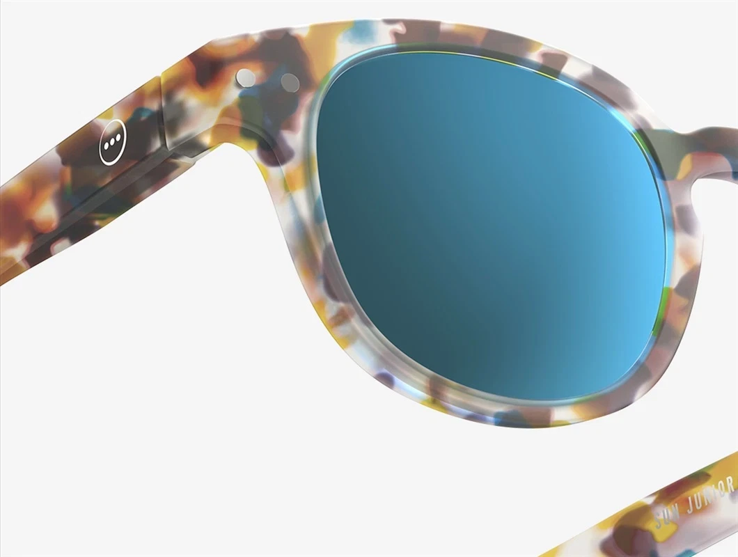 Børnesolbriller i modellen #c med 100% UV-beskyttelse i farven blue tortoise med spejlglas fra IZIPIZI Paris.