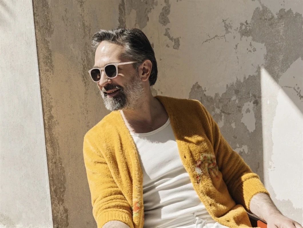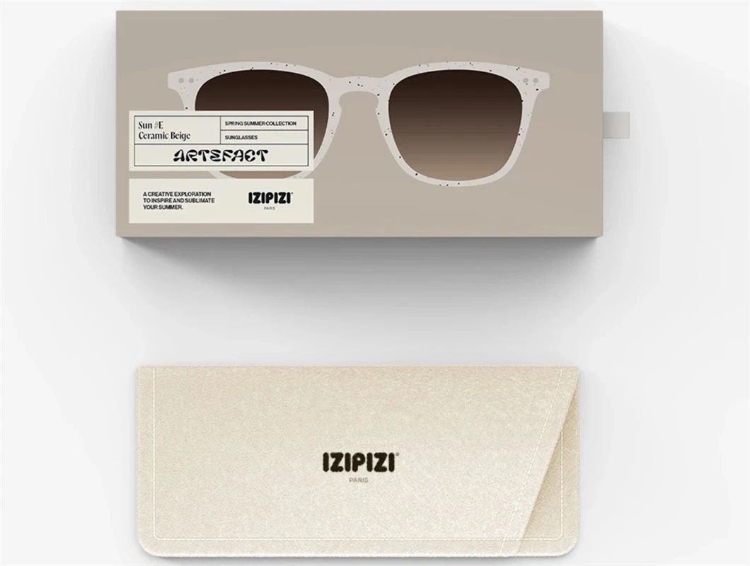 Solbrille til voksne i modellen #e med 100% UV-beskyttelse i farven ceramic beige fra IZIPIZI Paris.