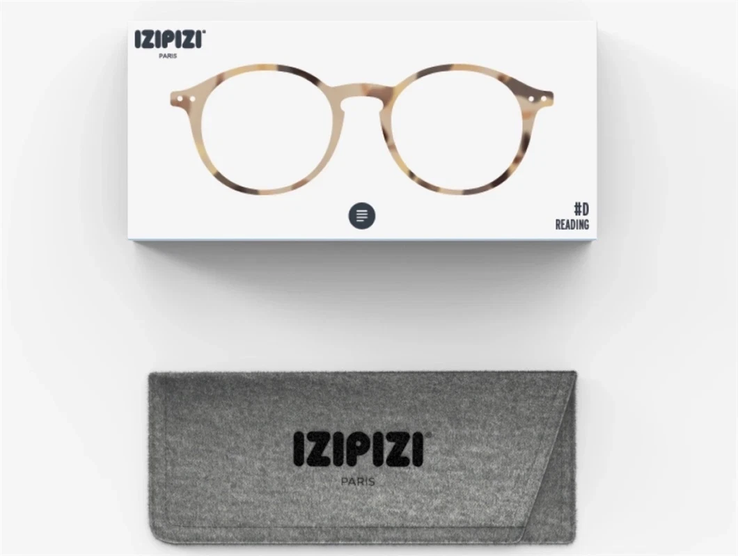 Læsebrille med styrke til voksne i modellen #d i farven light tortoise fra IZIPIZI Paris.