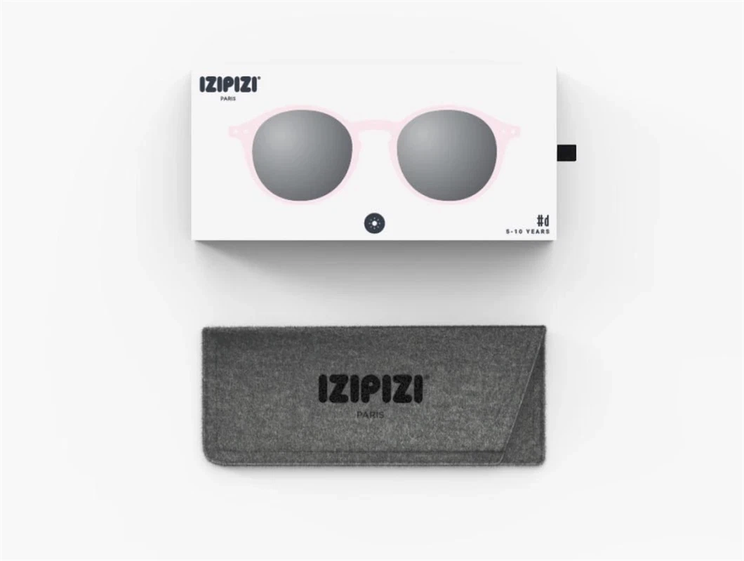 Børnesolbriller i modellen #d med 100% UV-beskyttelse i farven pink fra IZIPIZI Paris.