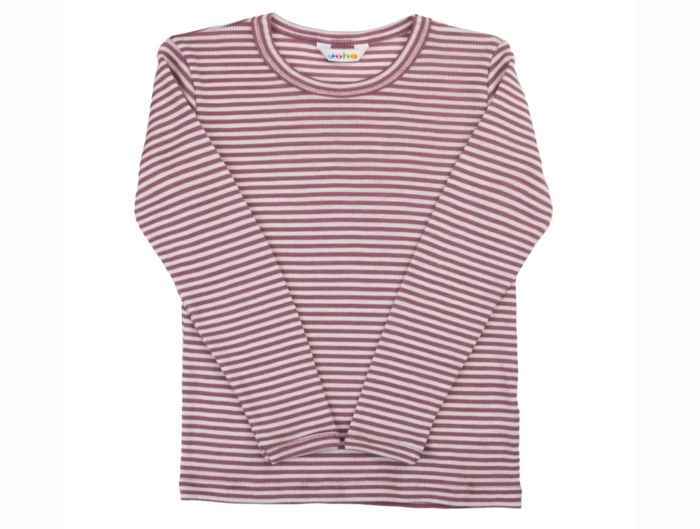 Langærmet bluse i blommefarvet lilla nuance (heather) fra Joha med smalle, tætte striber.