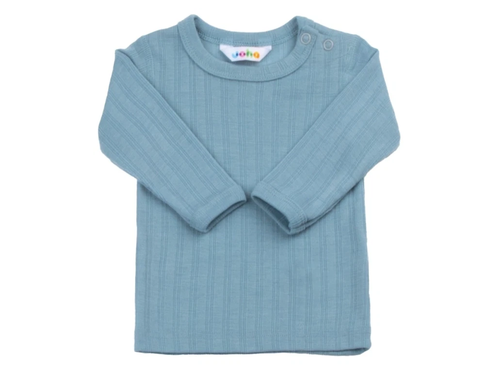 Joha uld/silke bluse lyseblå med lange ærmer i merinould og silke