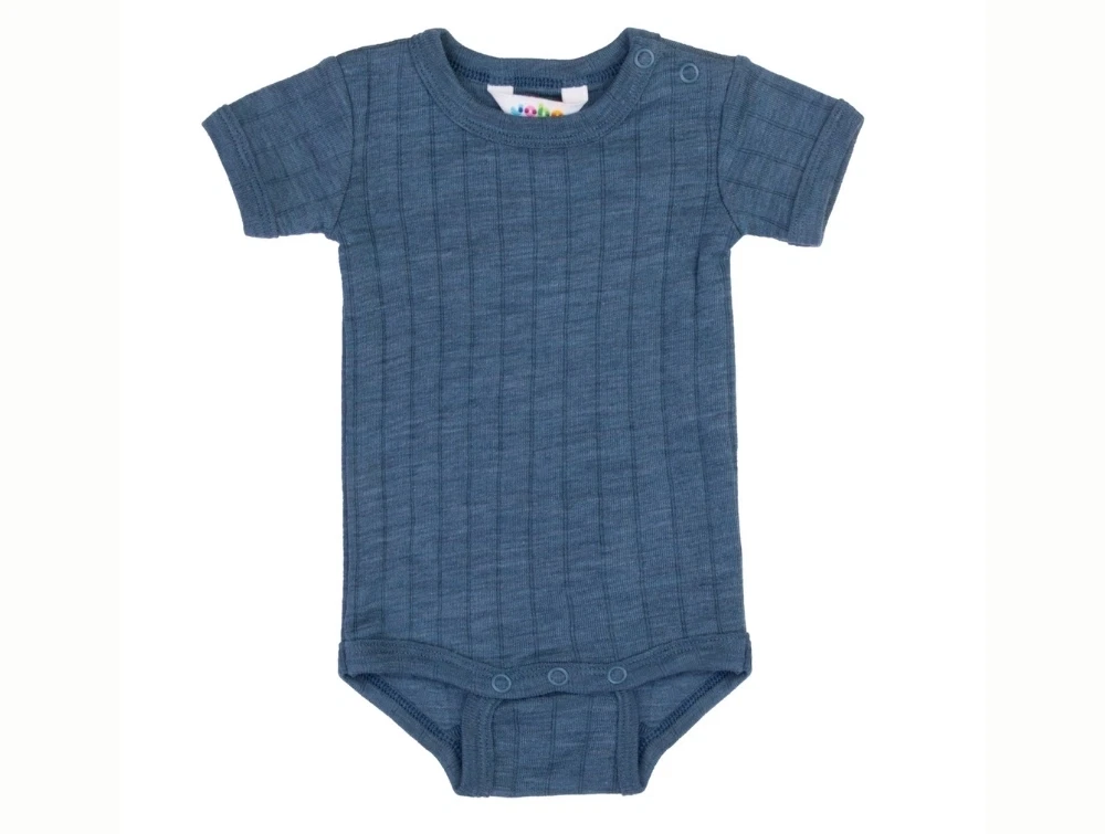 Body i meleret blå nuance (blue melange) fra Joha med korte ærmer.