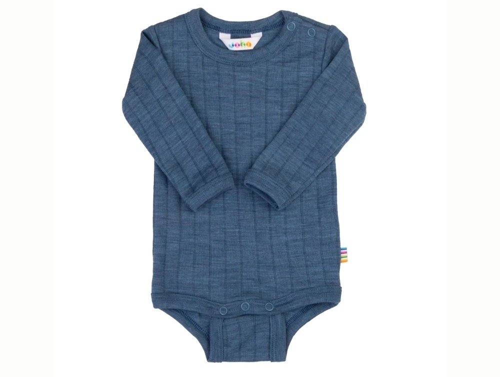 Langærmet body i meleret blå nuance (blue melange) fra Joha med en klassisk ribstruktur og et roligt, ensfarvet udtryk.