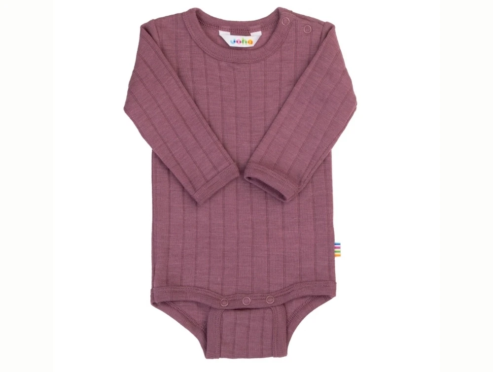 Langærmet body i blommefarvet lilla nuance (heather) fra Joha, designet i en fin ribstruktur med et diskret, let skinnende udtryk.
