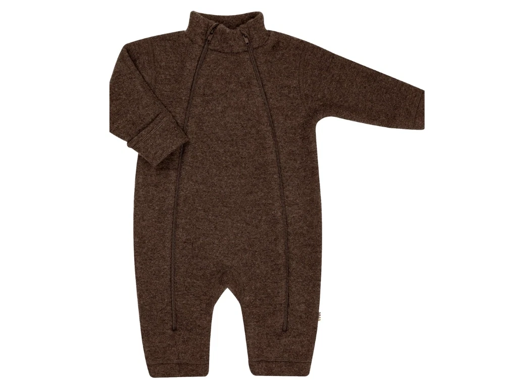 Joha mørkebrun heldragt i børstet uld med lynlåse