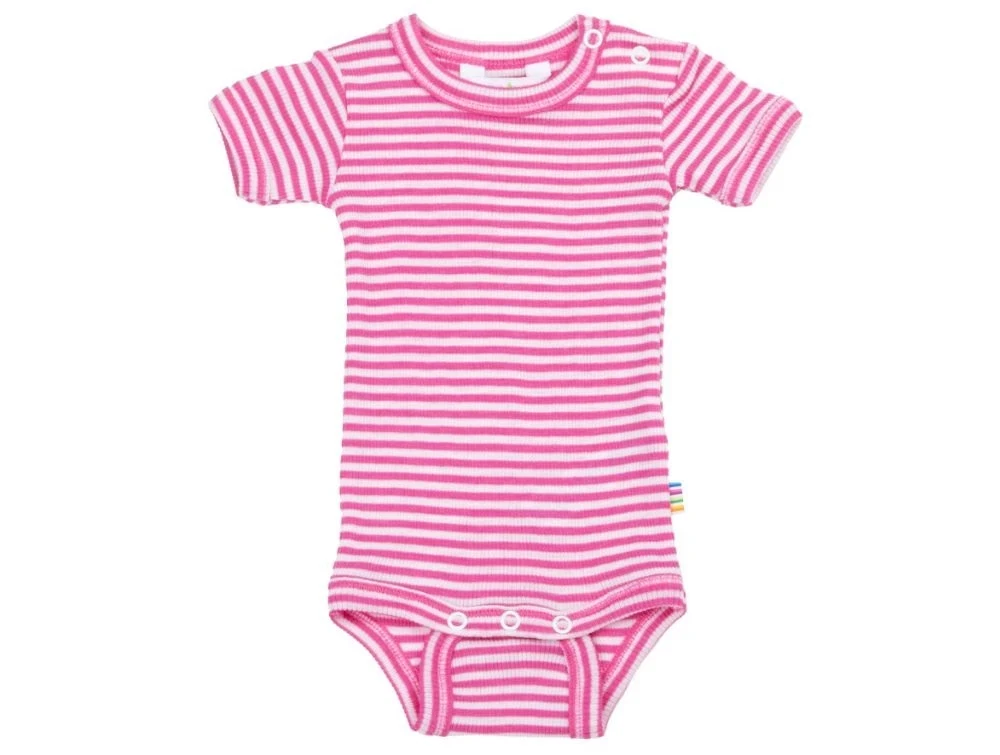 Blød body i ribkvalitet med korte ærmer i pink stribe fra Joha.