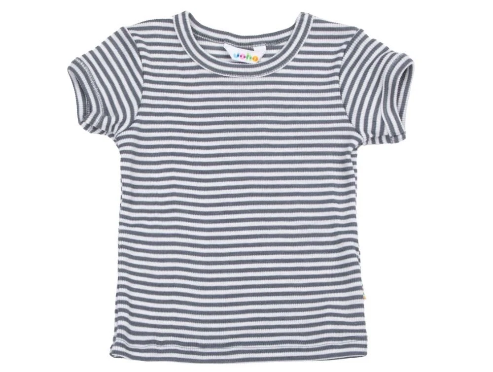 T-shirt i ribkvalitet med mørk grå (dark grey) striber fra Joha