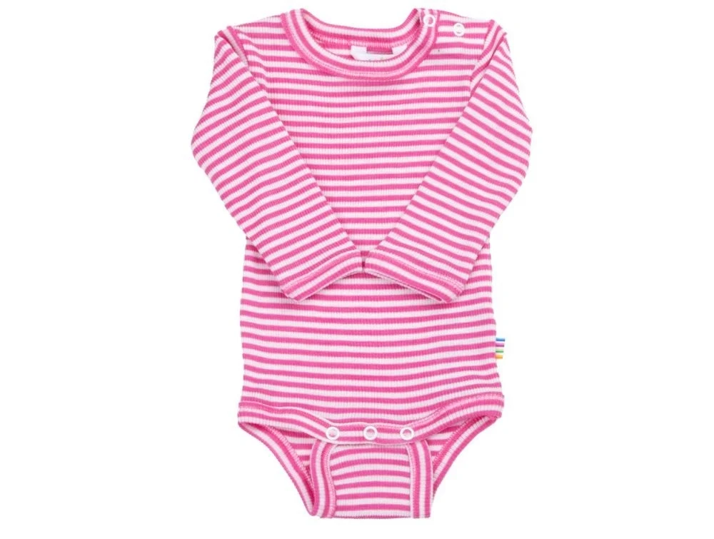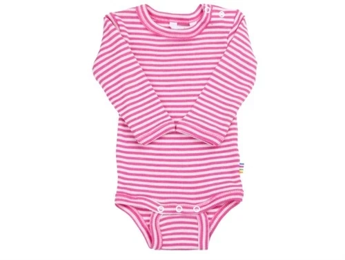 Blød body i ribkvalitet med lange ærmer i pink stribe fra Joha.