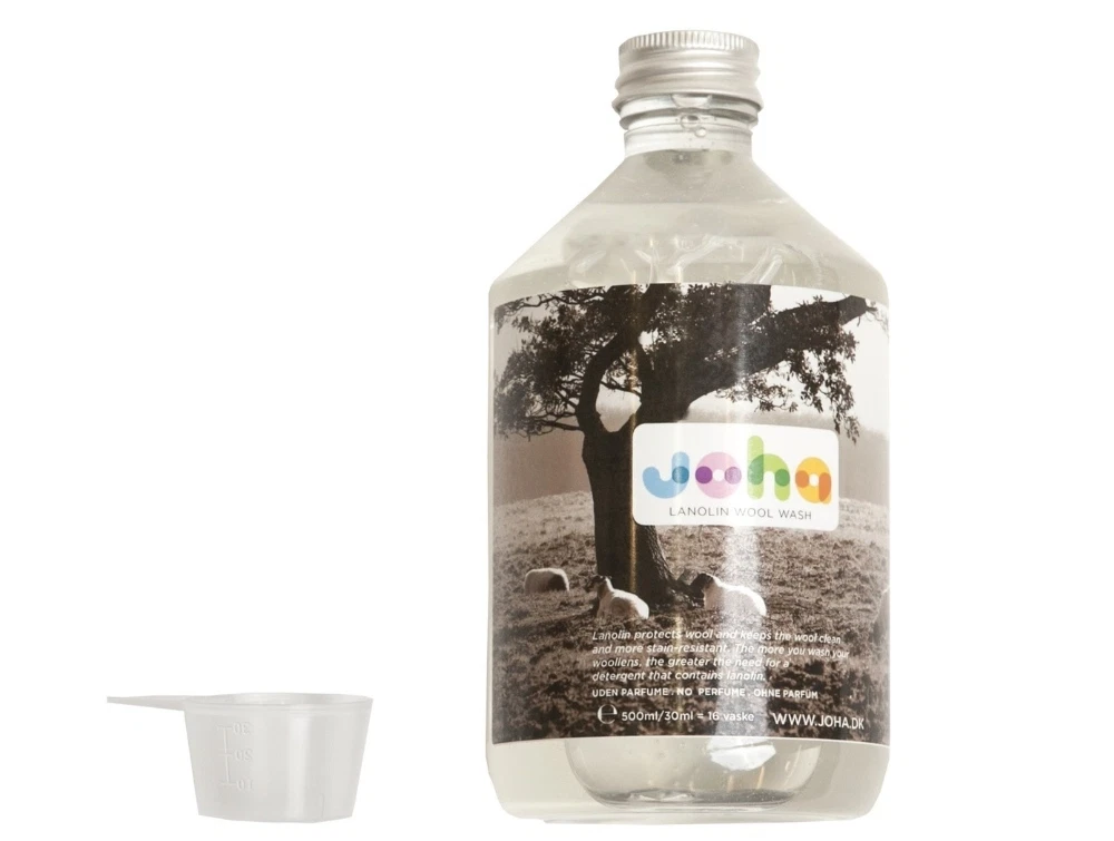 Flydende uldvaskemiddel med lanolin fra Joha – et skånsomt vaskemiddel til uld og uld/silke. Lanolin er uldens eget naturlige fedtstof, som findes i fårets uld. Når du vasker uldtøj med et vaskemiddel uden lanolin, mister fibrene med tiden deres beskyttende lag. Med dette uldvaskemiddel tilføres tøjet lanolin igen, så det bevarer sine naturlige egenskaber.
