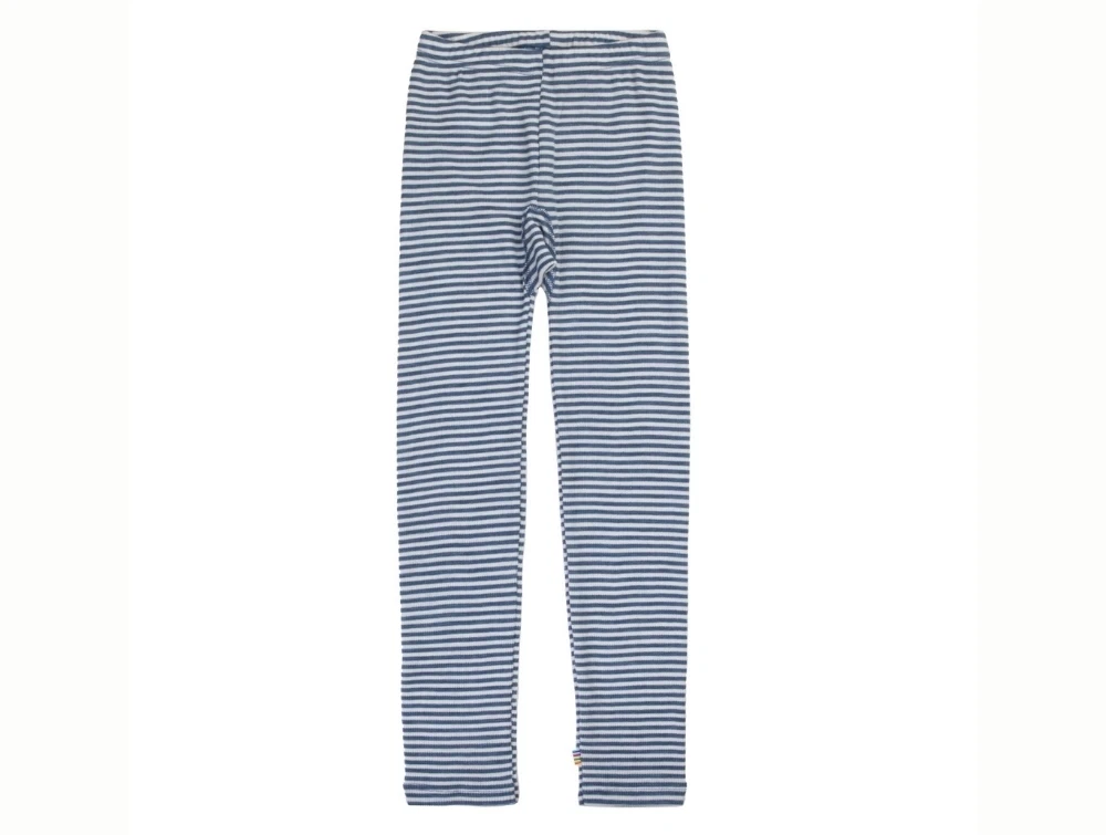 Joha leggings i blå og råhvid strib med elastik i taljen i uld og silke